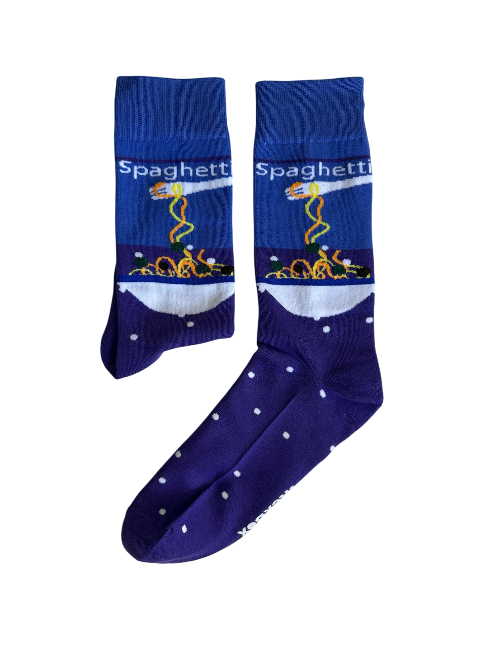 Ălskar du pasta? DĂ„ Ă€r dessa strumpor ett sjĂ€lvklart val! Med ett lekfullt spagettimotiv i hĂ€rliga fĂ€rger blir de en kul detalj i garderoben. Perfekta för middagsbjudningar, pizzakvĂ€llar eller nĂ€r du bara vill ge fötterna lite italiensk elegans!