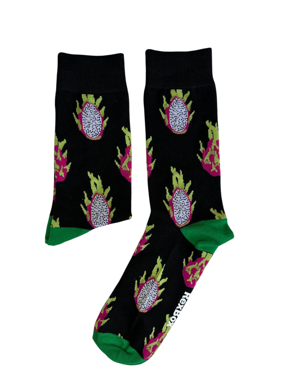Låt dina fötter sticka ut med dessa färgstarka strumpor inspirerade av drakfrukt! Med sin unika och lekfulla design får du en tropisk touch i vardagen – perfekt för dig som gillar att vara lite extra.