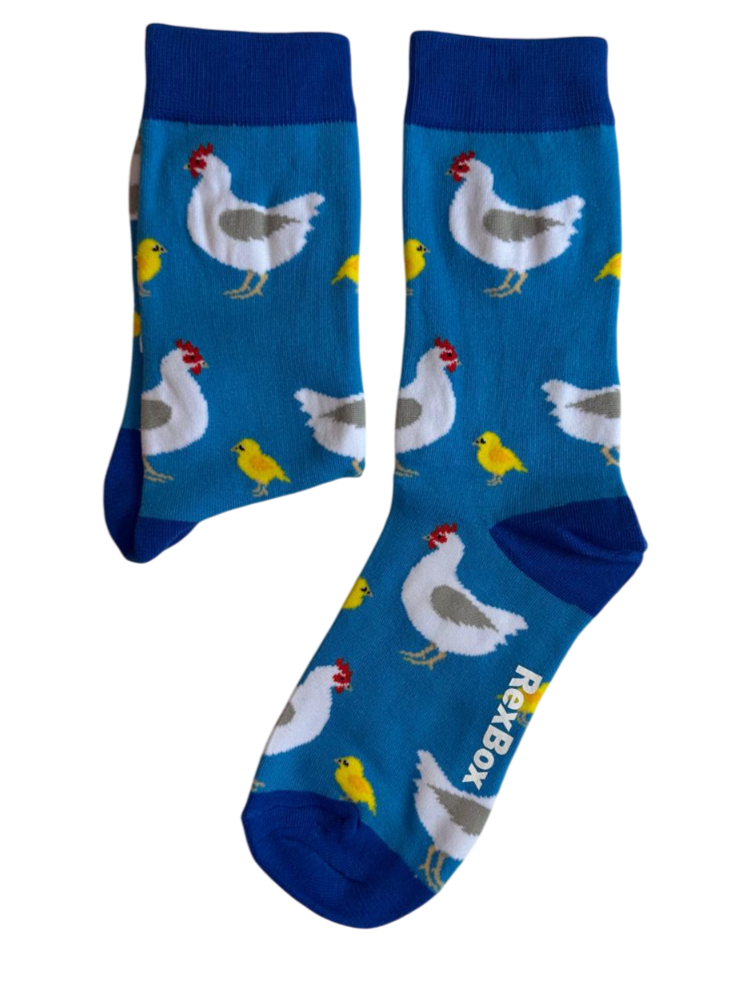Varför nöja sig med ett hönsgård när du kan ha hela gänget på fötterna? Dessa strumpor är en hyllning till alla kluckande, gulliga och lite stökiga höns och kycklingar – perfekta för dig som älskar lantliv, humor och en touch av bondgårdscharm!